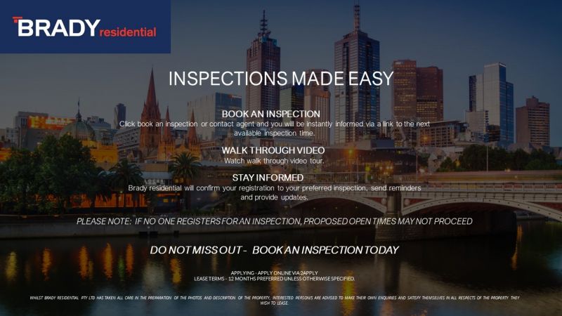Whilst Brady Residential Pty Ltd has taken all care in the preparation of the photos and description of the property, interested person/s are advised to make their own enquiries and satisfy themselves in all respects of the property they wish to lease.