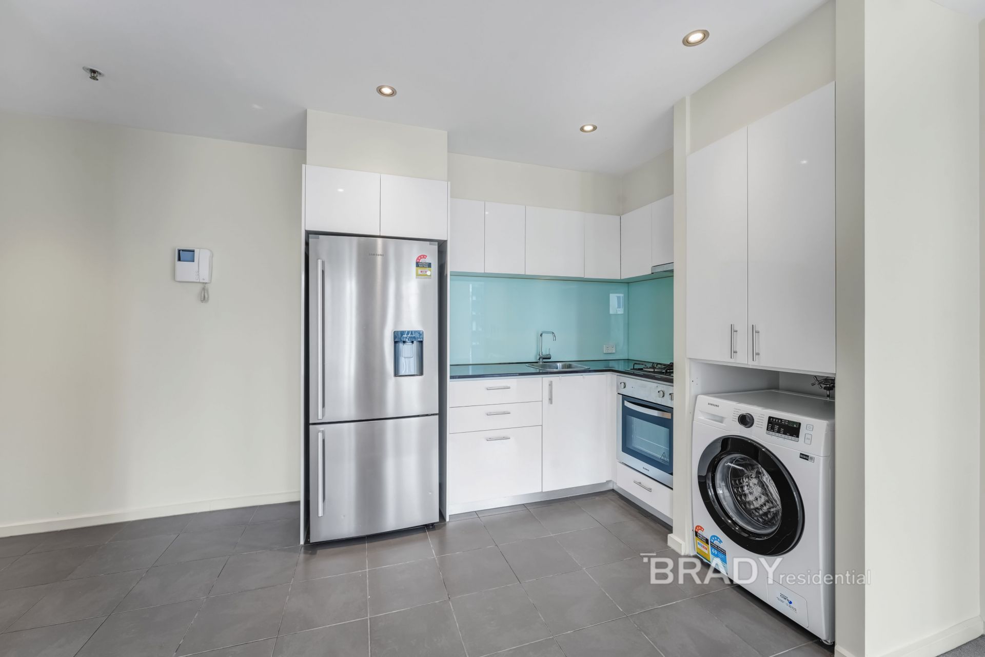 • Stylish and sleek kitchen with fridge, oven and cooktop, and washer/dryer included