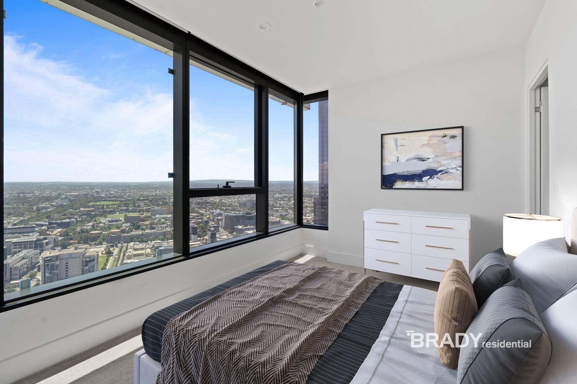 Perched on the 55th floor of the iconic Vision Apartments, this breathtaking three-bedroom residence redefines urban luxury, offering an exceptional blend of space, style, and sophistication. Whether you're seeking a vibrant city lifestyle or a premium investment opportunity, this property delivers on every level.