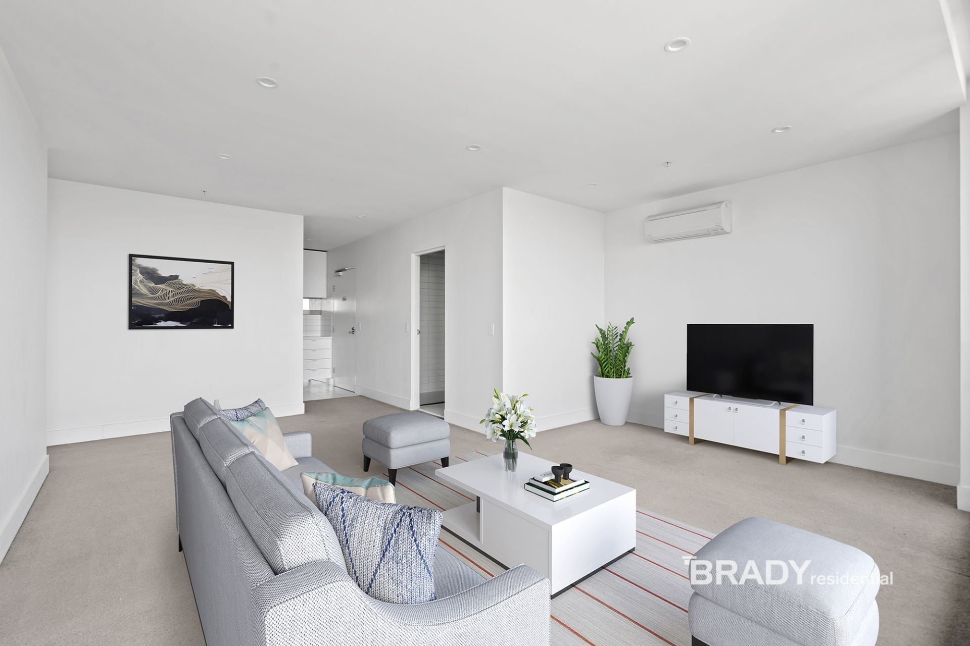 Step inside to discover an expansive open-plan living and dining area bathed in natural light. Sleek interiors flow effortlessly onto a private balcony, where you'll enjoy panoramic views of Melbourne's iconic skyline and beyond. The gourmet kitchen is a standout feature, designed with premium stone benchtops, high-end stainless-steel appliances, and extensive cabinetry to seamlessly combine practicality and elegance.
