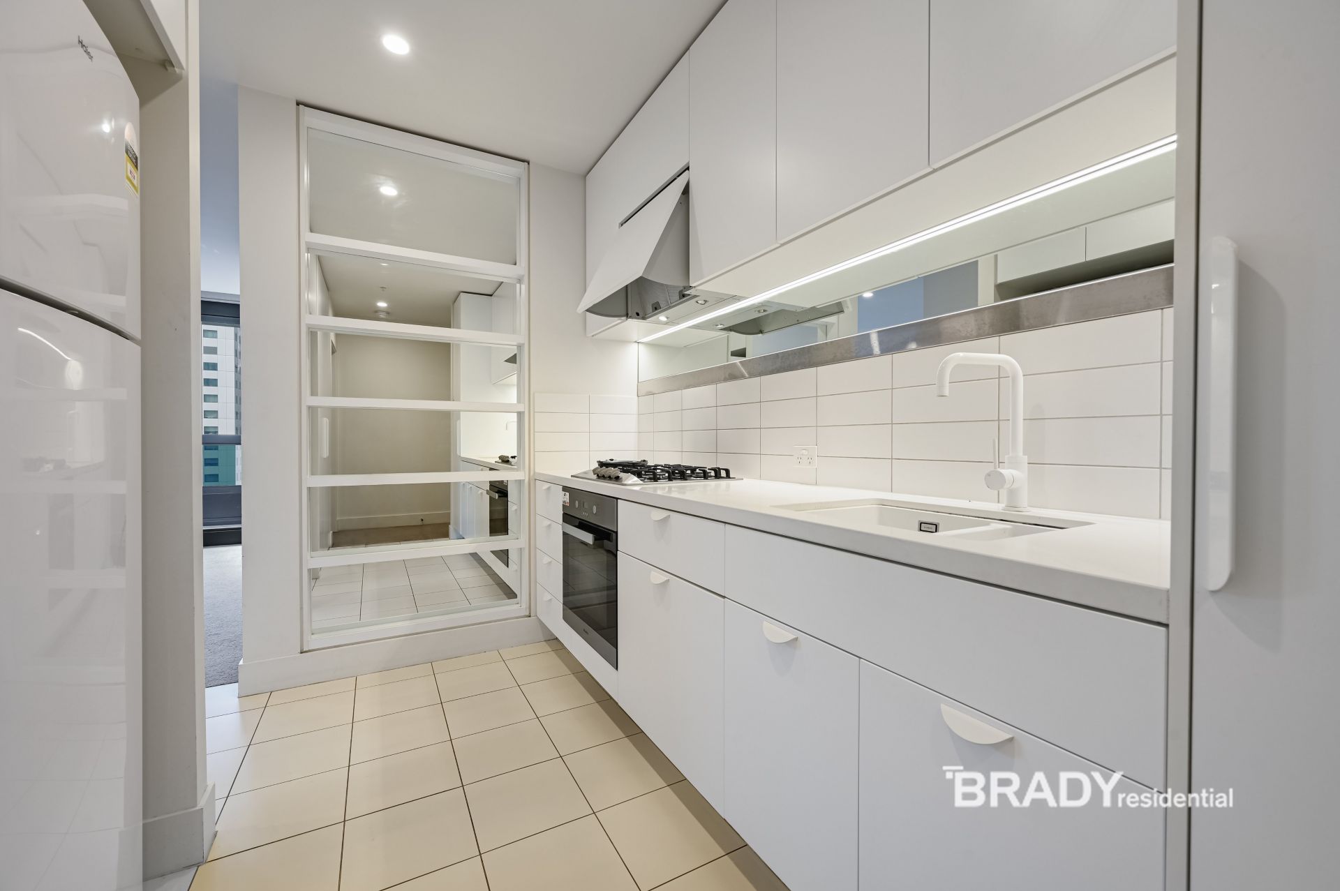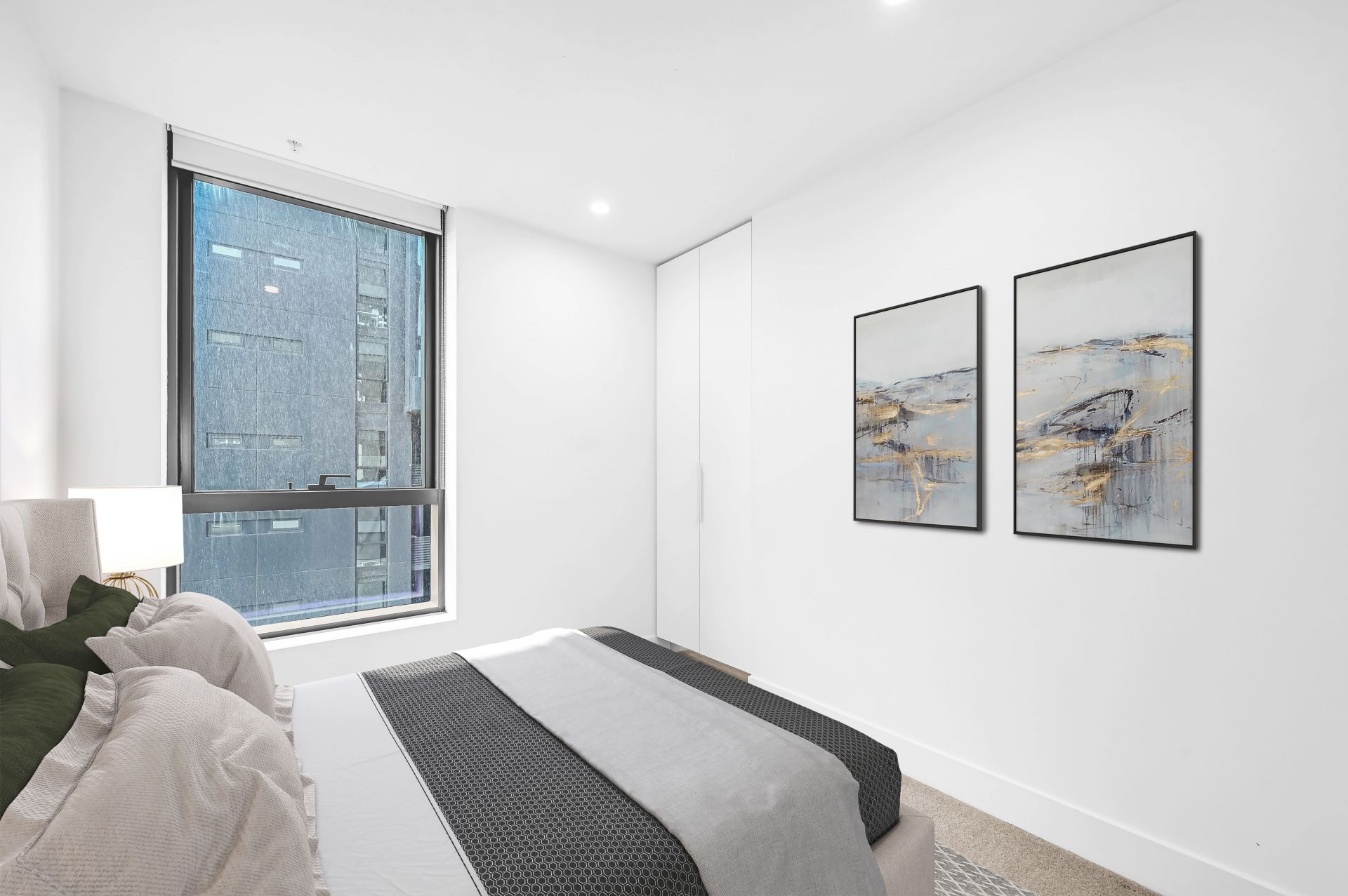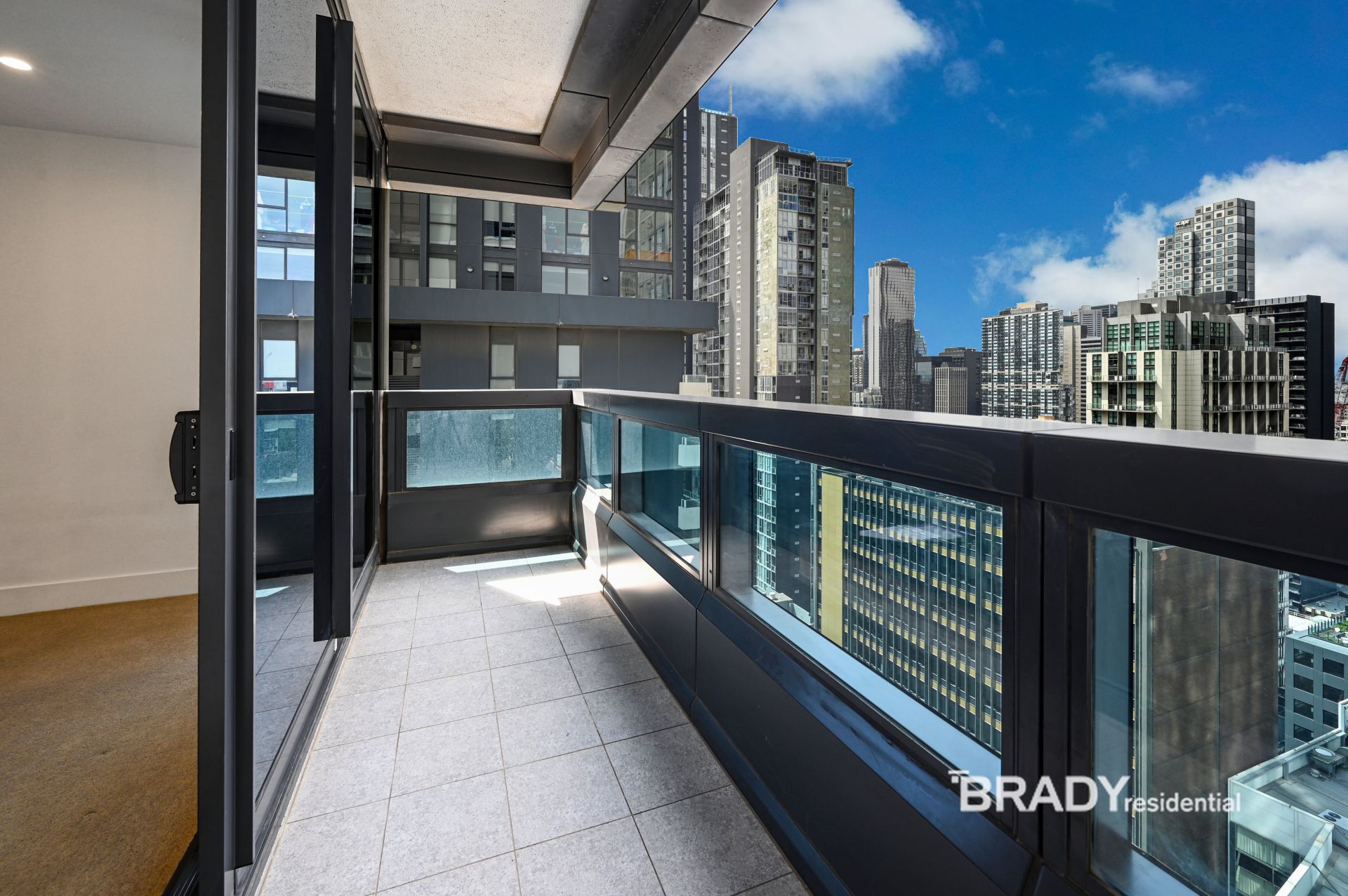 From the moment you step inside, you're greeted by a spacious open-plan design, highlighted by soft carpeted floors and generous natural light. The sleek kitchen features white stone benchtops, stainless steel appliances, and extensive floor-to-ceiling cabinetry-perfectly catering to both style and functionality. Flowing effortlessly from the living and dining areas, a private balcony offers an ideal spot to relax or entertain while taking in sweeping city views.