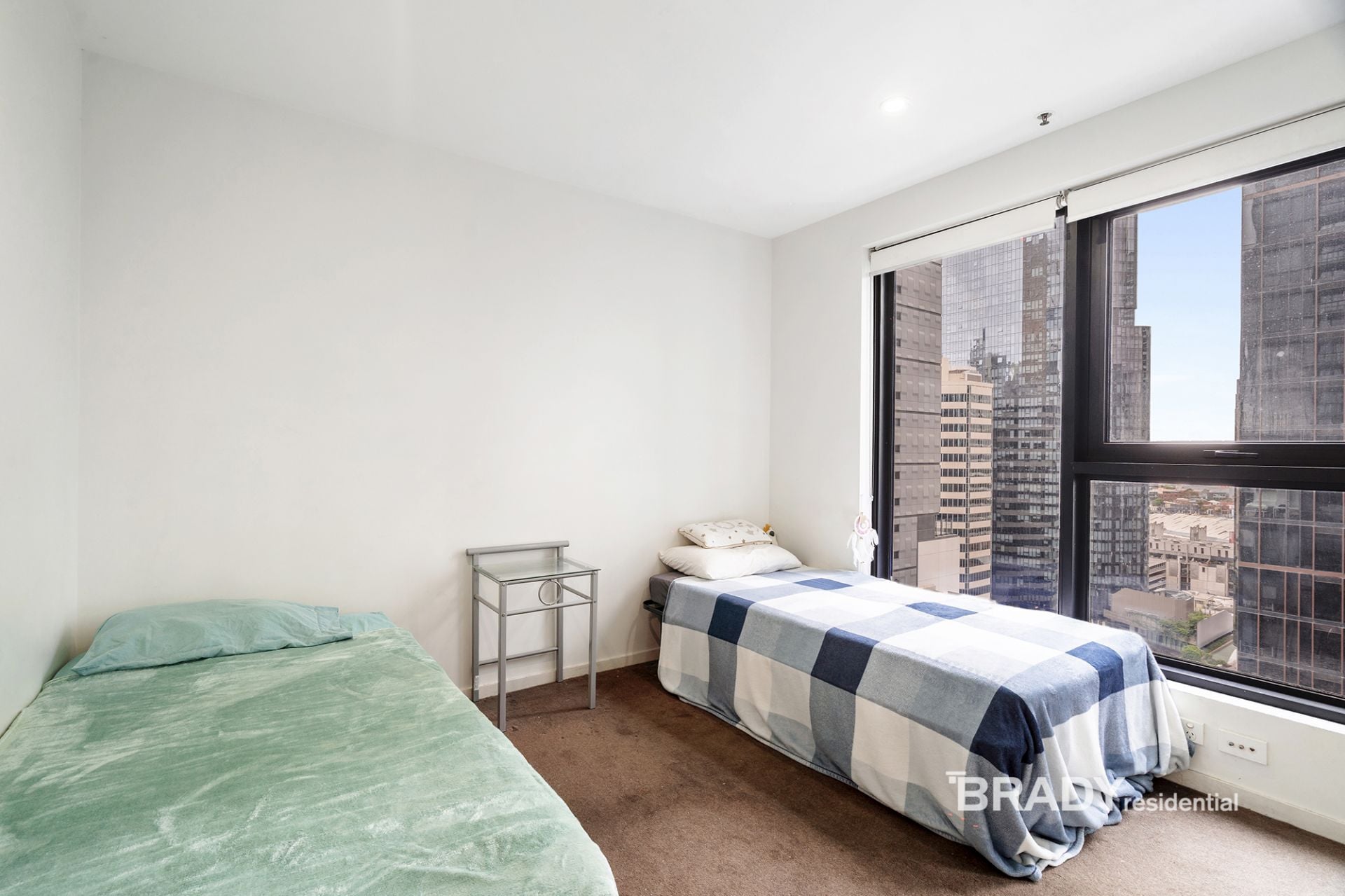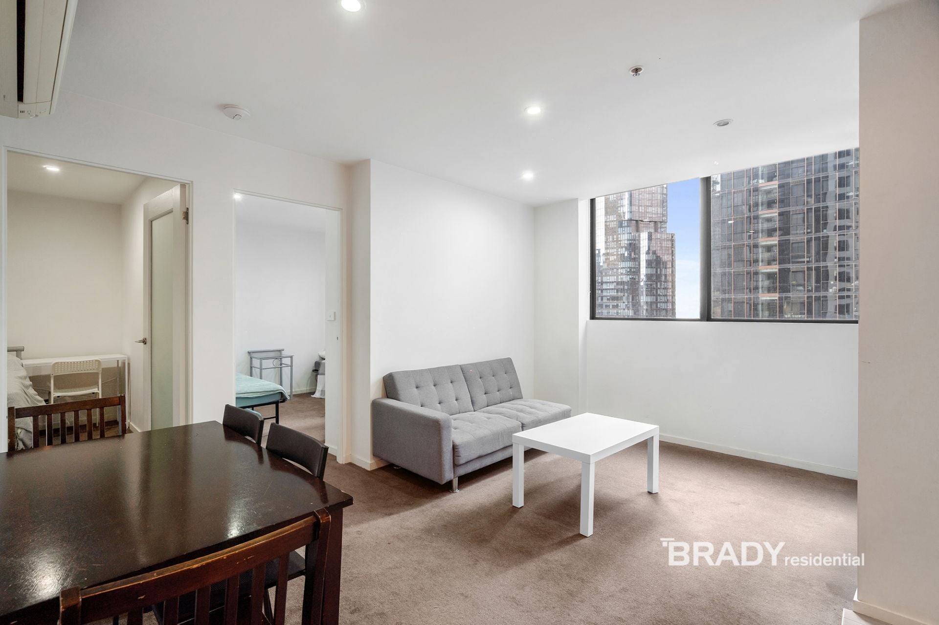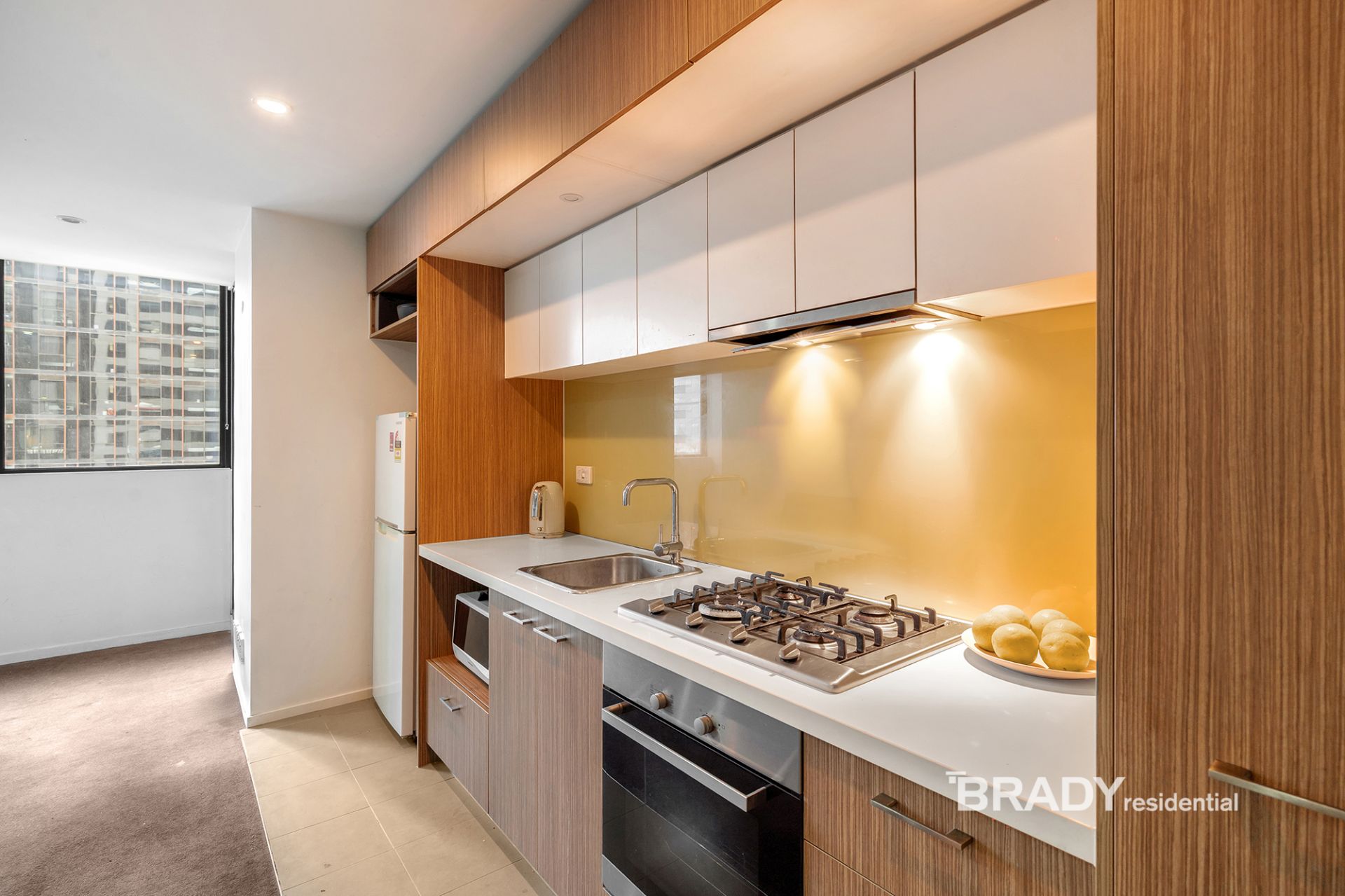 Positioned high within the prestigious Melbourne Sky complex, Apartment 2301/5 Sutherland Street delivers elevated city living with style, light and sweeping skyline views. A prized northerly aspect and floor-to-ceiling glazing fill the open-plan living and dining zone with natural light, while a private balcony provides the perfect vantage point to take in the energy of Melbourne's CBD. The sleek stone kitchen is beautifully appointed with premium Miele appliances and gas cooking, complemented by a generous bedroom with built-in robes and a designer bathroom featuring floor-to-ceiling tiling and concealed laundry.